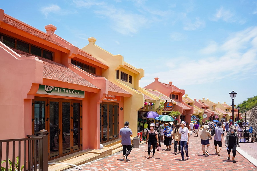 Phố thương mại Đại lộ Tương Lai: Với 64 căn shop được thiết kế với phong cách kiến trúc Địa Trung Hải rực rỡ sắc màu, du khách có thể thả ga mua sắm, check in tại đây.